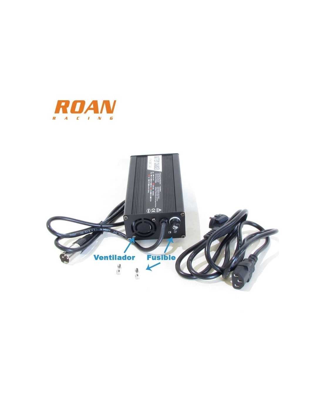 Cargador bateria 48V-4Ah macho con fusible y ventilador. Para patinetes de 4 baterías y todo tipo de productos eléctricos.